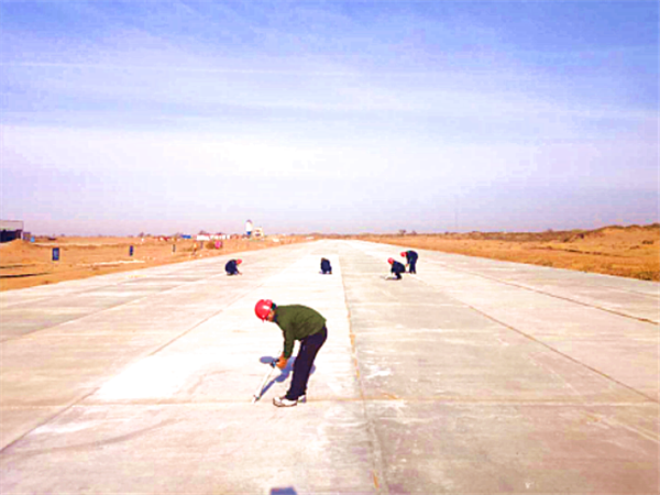 截止到11月中旬,奈曼旗通用機(jī)場(chǎng)已進(jìn)入了冬季停工期,機(jī)場(chǎng)施工工作全面停止。由于跑道剛剛鋪設(shè)完不久,為了進(jìn)一步對(duì)新修建的道面進(jìn)行必要的保護(hù),施工人員正在對(duì)道面做灌縫處理。