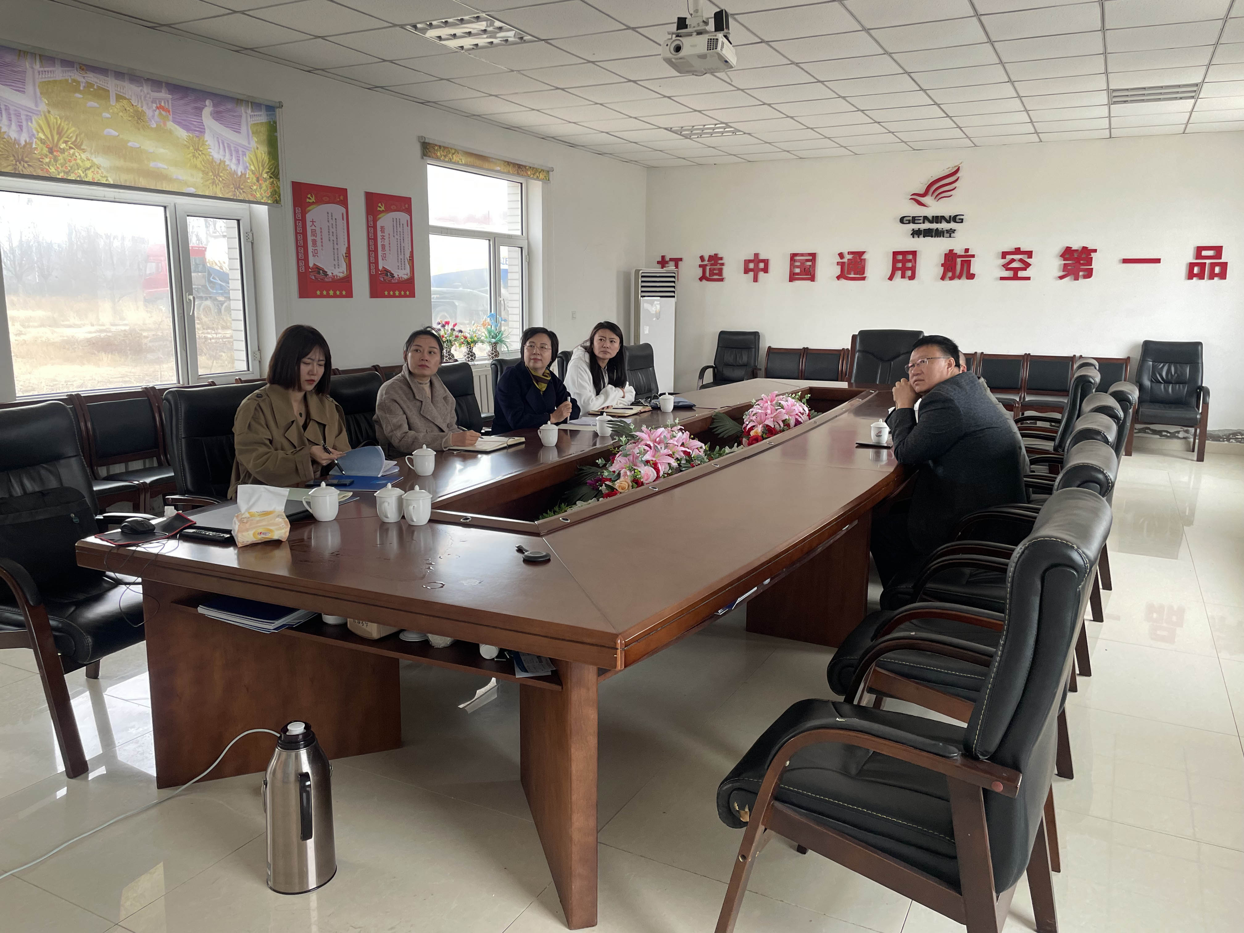 調(diào)研組一行首先參觀了企業(yè)的飛機(jī)展廳,邱志剛董事長(zhǎng)詳細(xì)介紹了公司發(fā)展歷程、技術(shù)研發(fā)及產(chǎn)品布局。在隨后召開的座談會(huì)上,雙方共同觀看了神鷹航空集團(tuán)宣傳片,深入了解企業(yè)在無人機(jī)研發(fā)、通航制造等領(lǐng)域的創(chuàng)新成果。